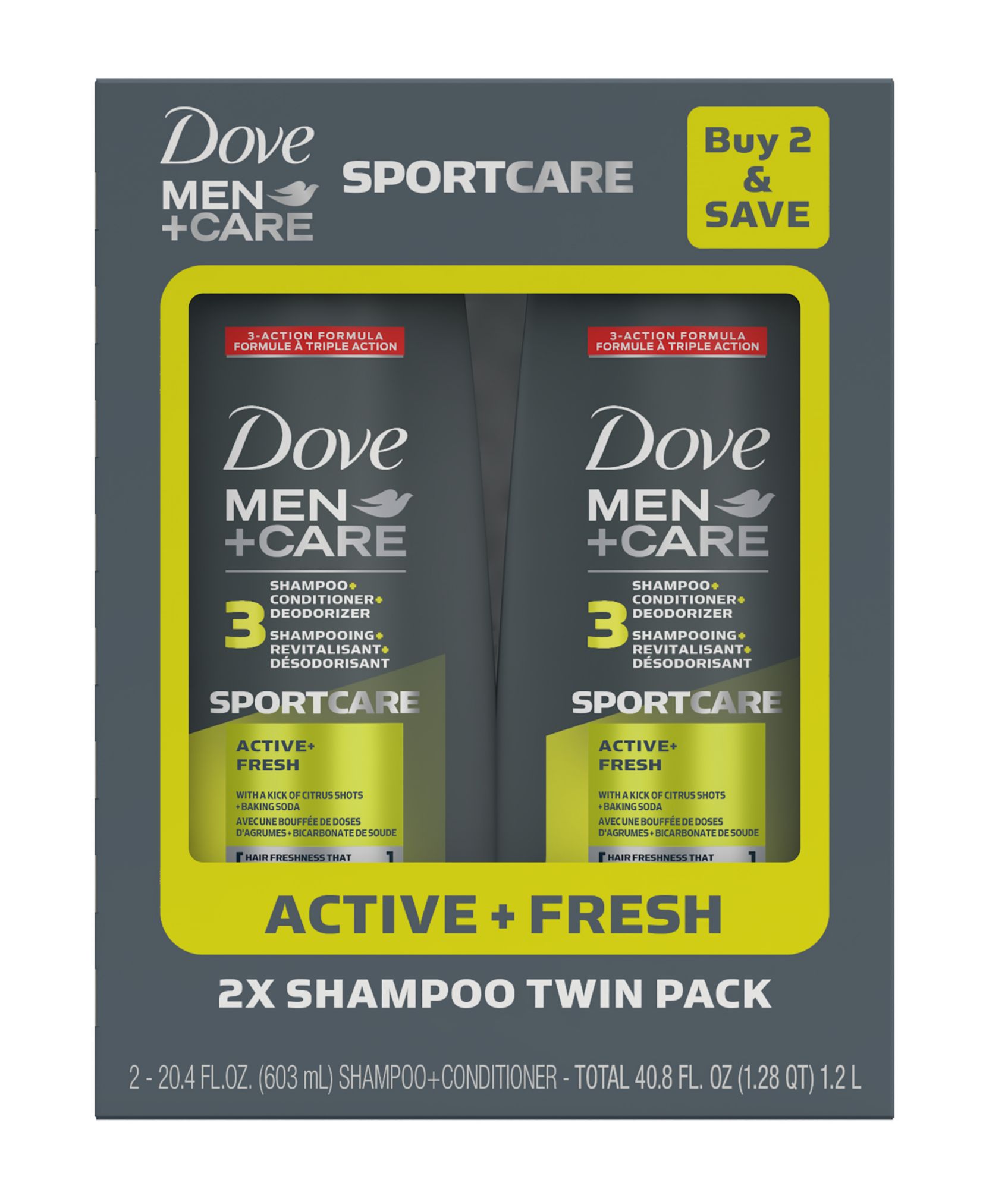 Dove Men Care Sport Care Active Fresh Shampoo 3 In 1 2 Pk 20 4 Oz Bjs Wholesale Club